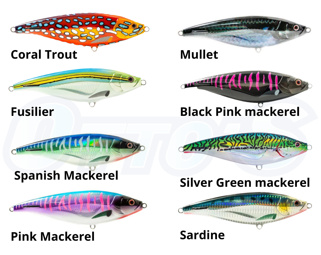 Years of research and development, plus many lifetimes of combined guiding experience from the Nomad Team, has led to the new Nomad Design range of GT & Bluewater Casting Lures. The Madscad is a sinking stickbait, available in 2 weights for the 190mm size. Styled on the typical deep bellied baitfish such as herring, scad and fusiliers. The Design Has been refined over years of testing and many prototypes. The subtle features like the flattened top of the head , the scalloped curve on the side of the body and the small tail wings all make the action on this Lure dynamic. The Madscad sinks level and actually wiggles like a subtle vibration lure whilst sinking, and its erratic swimming action when twitched on a cast retrieve is irresistible to fish. The 190mm deep can be trollled at 15kn for the ultimate super tough wahoo and tuna lure. The larger size Madscad lures are Ideal for Tuna , GT’s , Mackeral and kingfish with the smaller size being an allrounder for the likes of reef species , tuna , salmon , kingfish , mackeral and many other species.