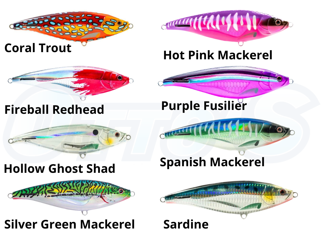 Years of research and development, plus many lifetimes of combined guiding experience from the Nomad Team, has led to the new Nomad Design range of GT & Bluewater Casting Lures. The Madscad is a sinking stickbait, available in 2 weights for the 190mm size. Styled on the typical deep bellied baitfish such as herring, scad and fusiliers. The Design Has been refined over years of testing and many prototypes. The subtle features like the flattened top of the head , the scalloped curve on the side of the body and the small tail wings all make the action on this Lure dynamic. The Madscad sinks level and actually wiggles like a subtle vibration lure whilst sinking, and its erratic swimming action when twitched on a cast retrieve is irresistible to fish. The 190mm deep can be trollled at 15kn for the ultimate super tough wahoo and tuna lure. The larger size Madscad lures are Ideal for Tuna , GT’s , Mackeral and kingfish with the smaller size being an allrounder for the likes of reef species , tuna , salmon , kingfish , mackeral and many other species.